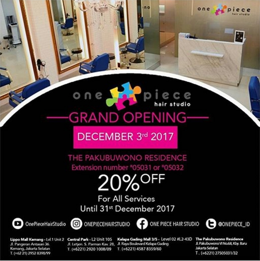 Pakubuwono, 2017-Dec-11 — /EPR Network/ — Even in uncertain economic times, PT Excel International with One Piece Hair Studio brand continues to grow, adding a new branch location at Pakubuwono Residence, Jakarta, Indonesia. The grand opening celebration takes place on Sunday, December 3rd, 2017, from 9 a.m. to 10 a.m., with the formal prayers recital and slamatan ceremony with Tumpeng (cone of rice) taking place at 9:15 a.m.