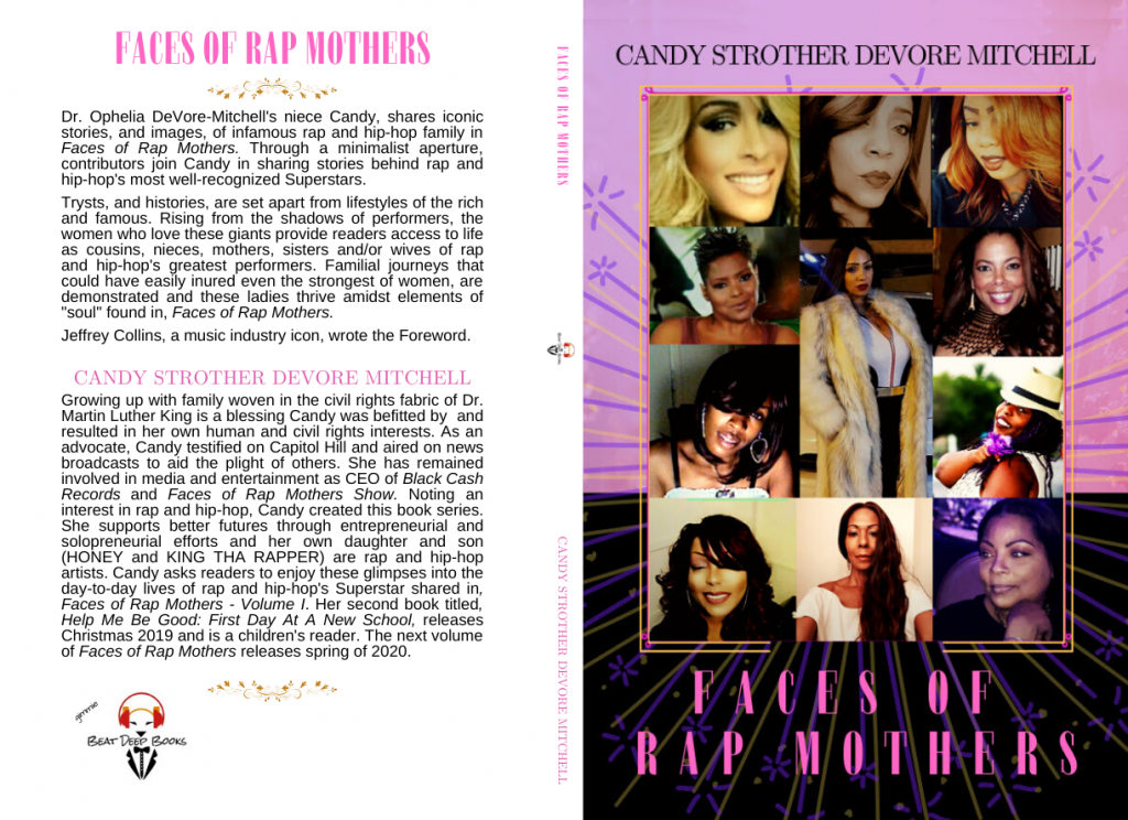 Faces of Rap Mothers, by Candy Strother DeVore Mitchell, is a book about the women involved in the lives of rap and hip-hop’s superstars. As a compilation of works – this title includes back stories from women who have supported rap and hip-hop artists dating as far back as the 1970’s. Surprisingly, in the compilation, when revealing the history of the development of rap and hip-hop’s legendary artists – predominantly from the West Coast, we learn unlike the Italian-American crooners of the 1930’s to 1950’s who appeared slated to excel through their Italian heritage and its influence on media during their era . . . these rap and hip-hop artists literally sprang up among localities in an unplanned fashion – no one was pulling strings to ensure these artists reached epic results. Yet, the rap and hip-hop community, developed with a strong camaraderie where the performers happenstance into each others lives.