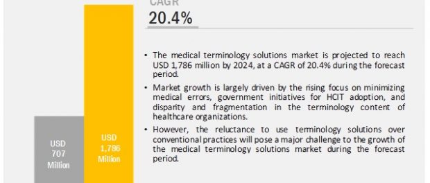 According to the new market research report “Medical Terminology Software Market by Application (Data Aggregation, Reimbursement, Decision Support, Clinical Trials), Product & Service (Services and Platforms), End User (Healthcare Provider, Payer, IT Vendor) – Global Forecast to 2024″, published by MarketsandMarkets™, the Medical Terminology Software Market is projected to reach USD 1,786 million by 2024 from USD 707 million in 2019, at a CAGR of 20.4% during the forecast period.