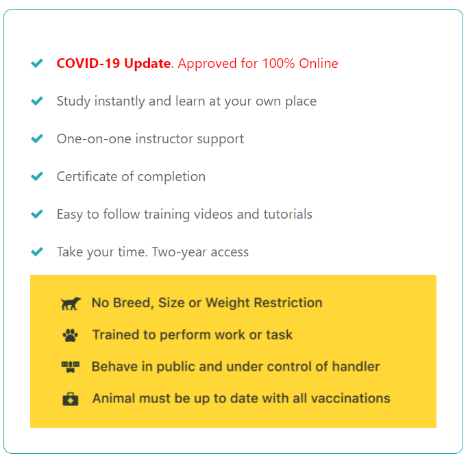 Other service dog online training courses are also available at the Service Dog Training School International portal.