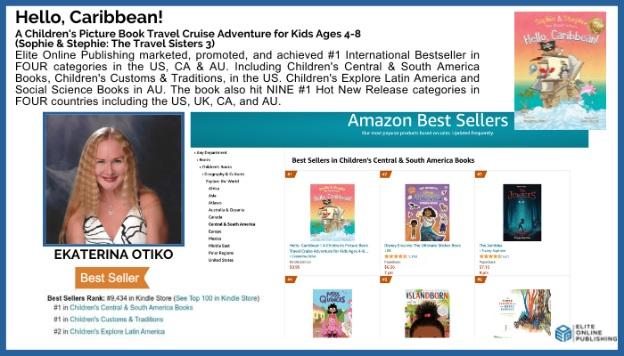 SAN DIEGO, CA, 2023-Dec-13 — /EPR Network/ — Author Ekaterina Otiko joined the ranks of bestselling authors on Amazon with her New Book, Hello, Caribbean!: A Children’s Picture Book Travel Cruise Adventure for Kids Ages 4-8 (Sophie & Stephie: The Travel Sisters 1), which was pre-released Tuesday, November 16th, 2023, by Amazon.com – the nation’s #1 place to buy books.