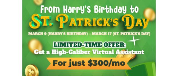 From Harry’s Birthday to Patrick’s Day: Get Lucky with A High-Caliber Virtual Assistant for Just $300/Month!