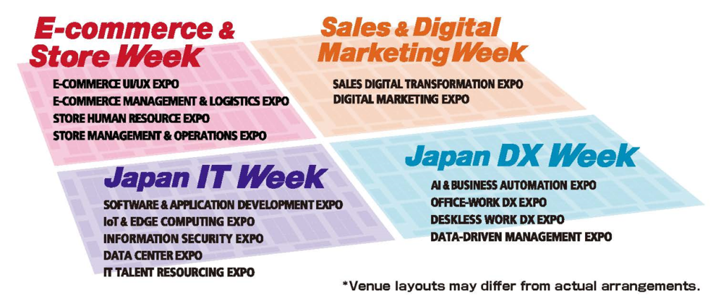 - Japan IT Week remains at the core, covering system development, operation, and maintenance, with dedicated exhibitions for software, IoT, information security, and data centres.