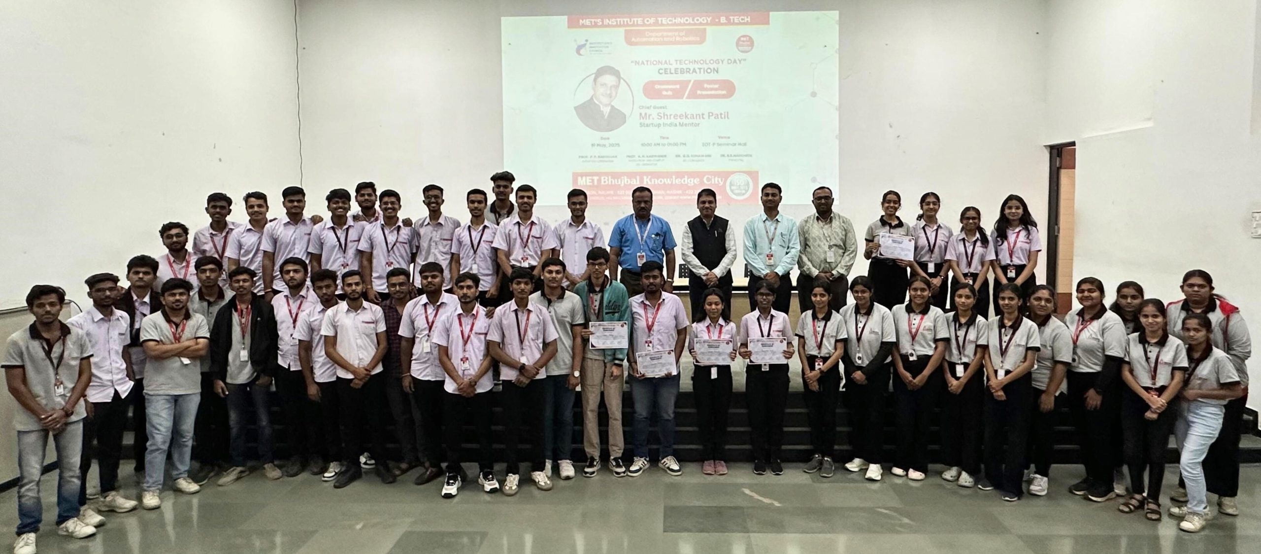 Shreekant Patil celebrated National Technology Day at MET Bhujbal Knowledge City, inspiring 75+ students on India’s tech journey from Op Shakti to UPI & ‘Atmanirbhar Bharat.’ He covered emerging tech, industry evolution, and future-proofing careers, concluding with a quiz & poster competition.