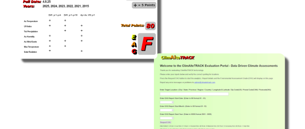 ClimAIteTRACK is an all in one insurance solution that can provide detailed and region specific climate assessments, indicating past and potential exposure to severe weather events. Using historical and current weather metrics and statistics, ClimAIteTRACK can deliver an easy to understand EAG that helps insurance businesses deploy better premium pricing strategies as well as offering transparency to clients. Insurers can utilize the DPPM and ClimAIteTRACK analytics as a way of offering additional revenue generating products to new and existing clients. ClimAIteTRACK structure is modular and additional analytics and layers can be integrated for a more precise and client base specific analysis. Climate change is no longer unpredictable and should be considered a constant in strategic planning and ClimAIteTRACK is a powerful tool that can help insurance companies and liability carriers navigate the current environmental landscape. Give ClimAIteTRACK a try and get an EAG for any location. Access here: https://traveltechnologysolutions.net/EvalPortal/