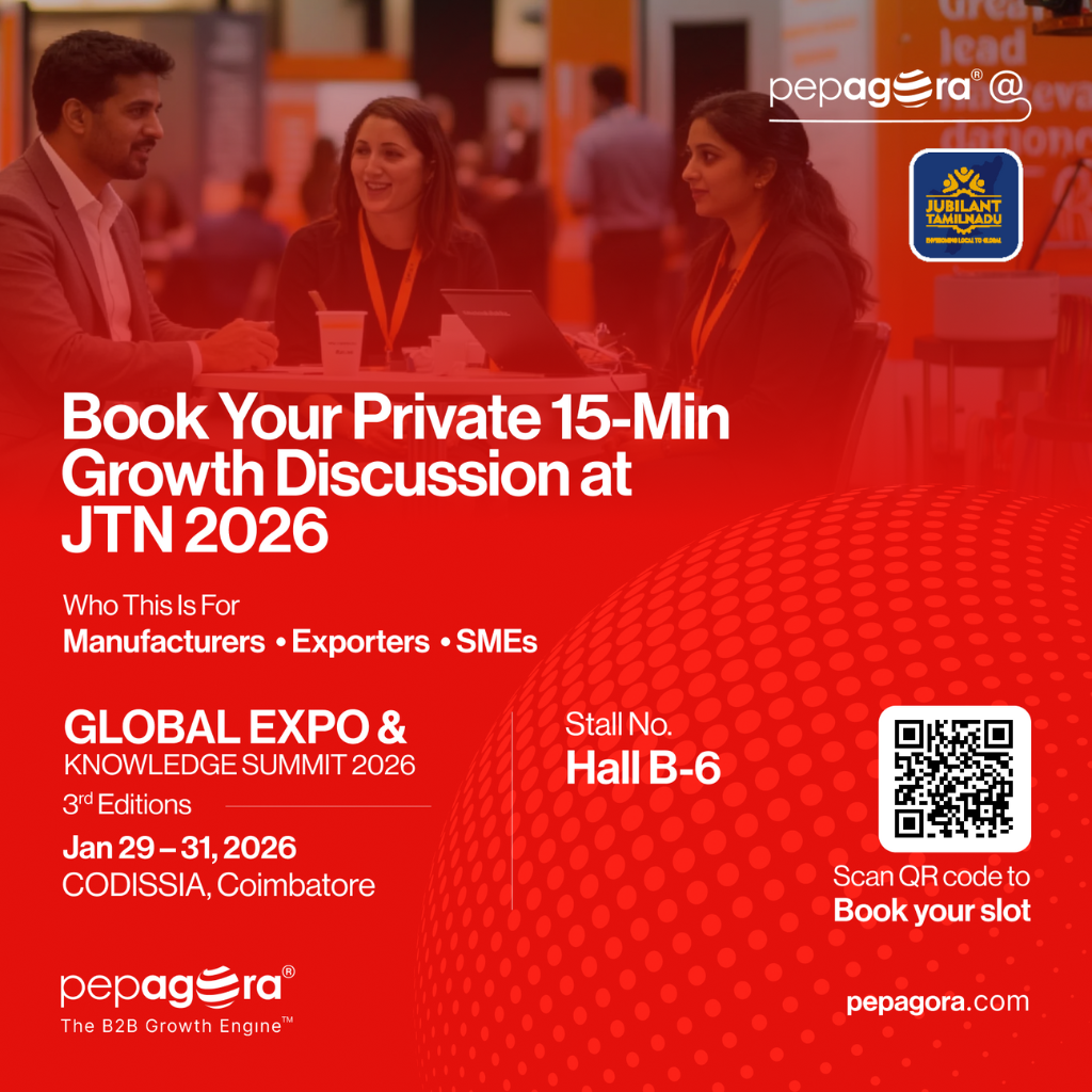 Coimbatore, India, 2026-01-29 — /EPR Network/ — Pepagora will work with more than 1,000 small and medium-sized enterprises (SMEs) at the Jubilant Tamil Nadu Global Expo (JTN) 2026, scheduled to be held from January 29 to 31 at the CODISSIA Trade Fair Complex, Coimbatore. The engagement is aimed at helping SMEs derive clearer, measurable business outcomes from their participation at the three-day trade event.
